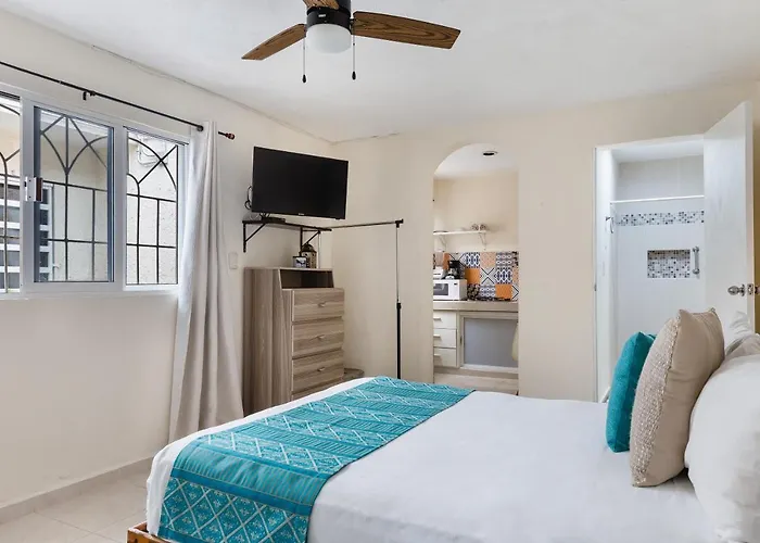 Localizada a cerca de 10 minutos andando a Plaza Ceviche, a propriedade está a uma distância aproximada de 15 minutos a pé do ponto de ônibus autobus. Dê um passeio tranquilo de 10 minutos até o coração de Cancún. Se encontra a 10 minutos dirigindo do Parque Urbano Kabah.